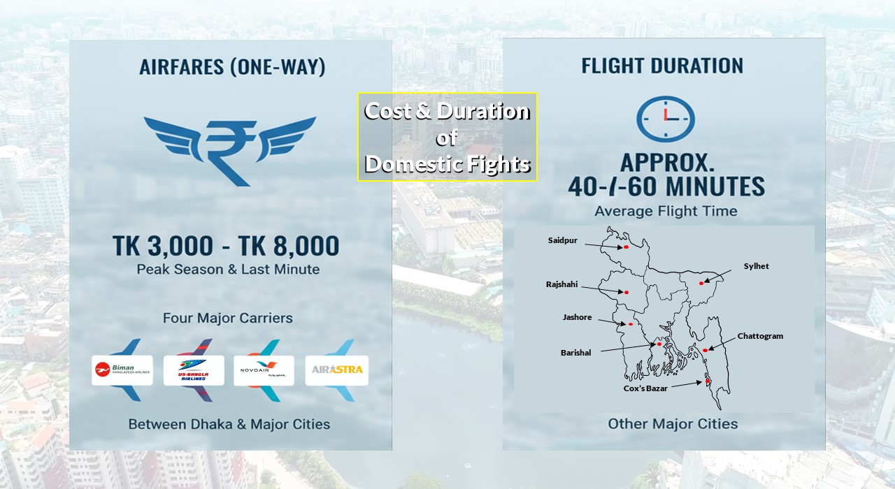 What is the cost of domestic flights, and how long do they take?